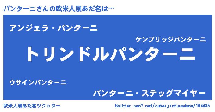 | 男性向けラノベタイトル風あだ名 | 『パンターニ~年齢イコール彼女いない歴の魔法使い~』 |