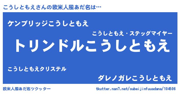 | 男性向けラノベタイトル風あだ名 | 『こうしともえ~年齢イコール彼女いない歴の魔法使い~』 |