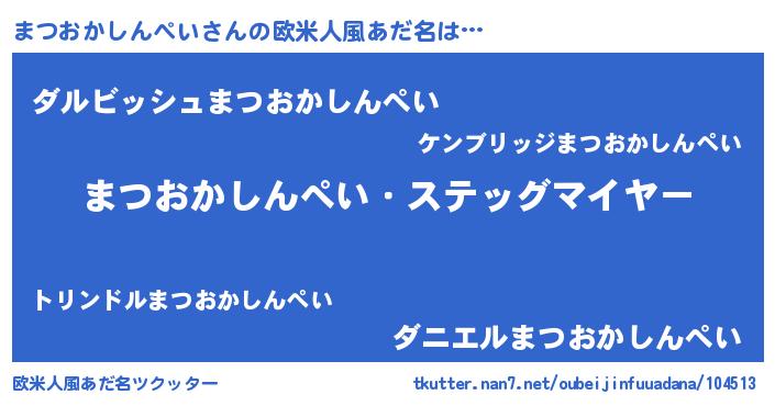 | 胡散臭い通販商品みたいなあだ名 | 『前代未聞の水素水…その名も「まつおかしんぺい」』 |