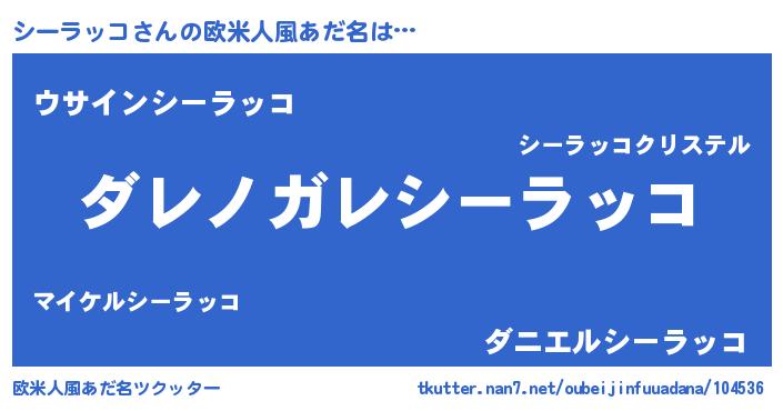 | 女子向けラノベタイトル風あだ名 | 『シーラッコが死なない童話 林檎のシーラッコの診療簿』 |
