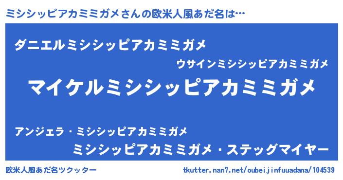 | 男性向けラノベタイトル風あだ名 | 『ミシシッピアカミミガメの憂鬱』 |