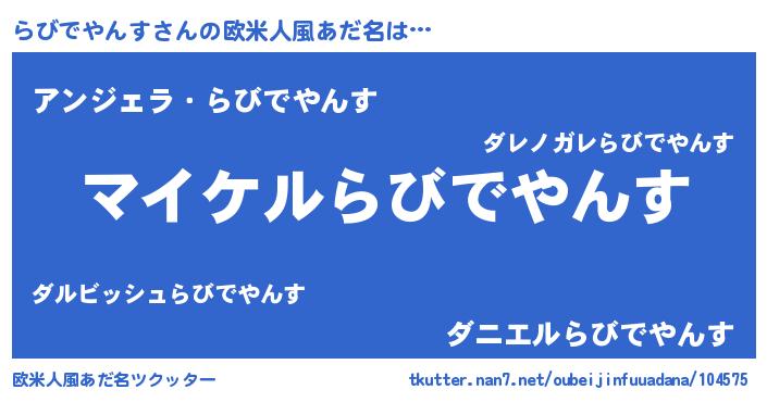 | 男性向けラノベタイトル風あだ名 | 『らびでやんすの憂鬱』 |