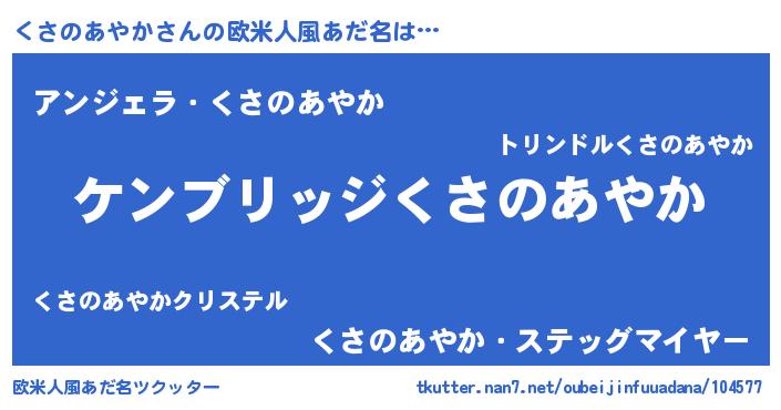 | 女子向けラノベタイトル風あだ名 | 『くさのあやかストレイドッグス』 |