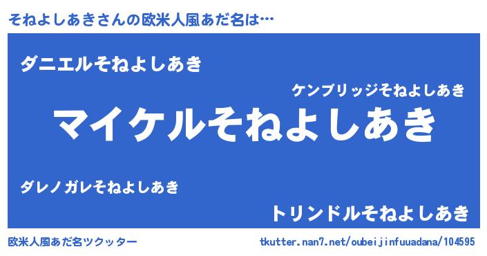 | 肩書あだ名 | 『そねよしあき社長』『そねよしあき少将』 |