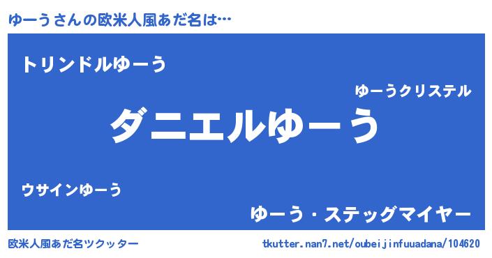 | ヒーロー風カッコイイあだ名 | 『慈愛の使者ゆーう』『炎刃騎士ユー』 |
