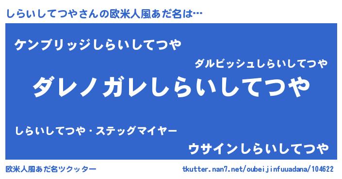 | 意味不明あだ名 | 『住所不定無職しらいしてつや(12歳)』 |