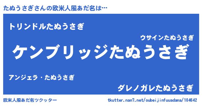 | 男性向けラノベタイトル風あだ名 | 『Re:たぬうさぎから始める異世界生活』 |