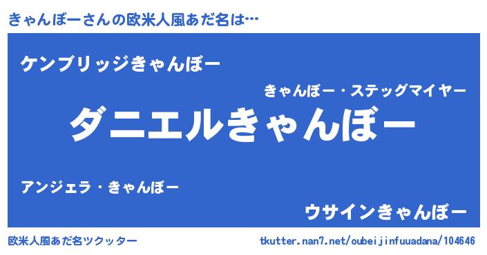 | 男性向けラノベタイトル風あだ名 | 『おまえをオタクにしてやるから、俺をきゃんぼーにしてくれ! 』 |