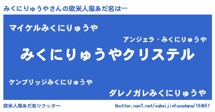 | 意味不明あだ名 | 『みくにりゅうやフォーエバー』 |