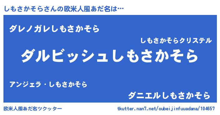 | 男性向けラノベタイトル風あだ名 | 『しもさかそらという概念が存在しない退屈な世界 』 |