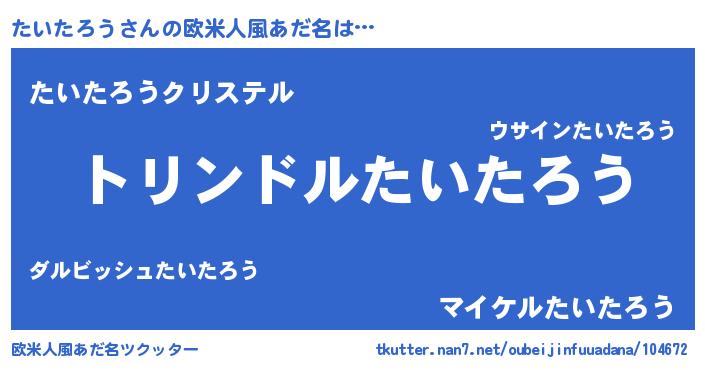 | 男性向けラノベタイトル風あだ名 | 『たいたろう~年齢イコール彼女いない歴の魔法使い~』 |