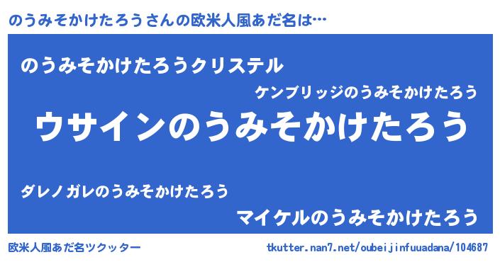 | 男性向けラノベタイトル風あだ名 | 『のうみそかけたろうの嫁は女の子じゃないと思った?』 |
