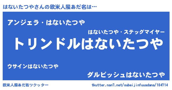 | 男性向けラノベタイトル風あだ名 | 『はないたつや~年齢イコール彼女いない歴の魔法使い~』 |