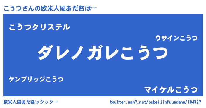 | 意味不明あだ名 | 『住所不定無職こうつ(68歳)』『自称こうつ』 |