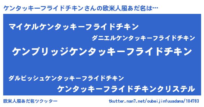 | 女子向けラノベタイトル風あだ名 | 『ケンタッキーフライドチキンなんてお断りですっ。』 |