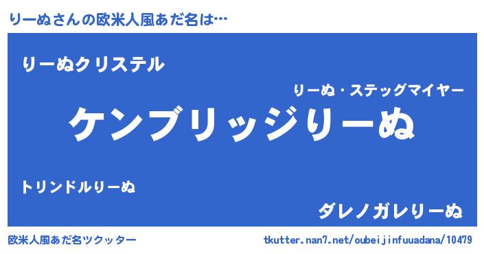| 男性向けラノベタイトル風あだ名 | 『Re:りーぬから始める異世界生活』 |