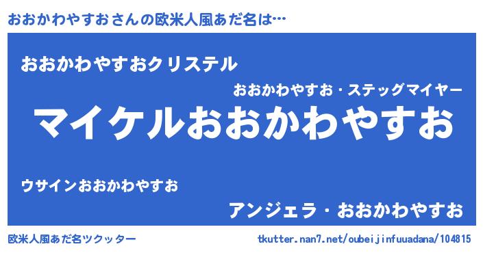 | 男性向けラノベタイトル風あだ名 | 『おおかわやすおの憂鬱』 |