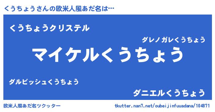 | 男性向けラノベタイトル風あだ名 | 『くうちょうの憂鬱』 |