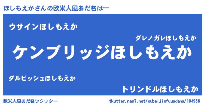 | 意味不明あだ名 | 『自称ほしもえか』『ニラ科ほしもえか属』 |