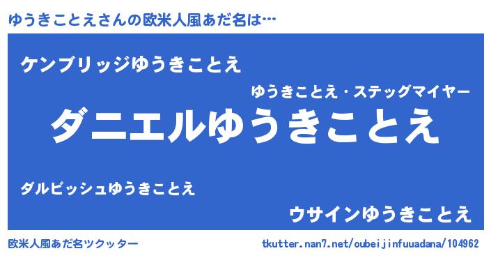 | 女子向けラノベタイトル風あだ名 | 『死神ゆうきことえの再婚』 |