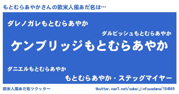 | 男性向けラノベタイトル風あだ名 | 『Re:もとむらあやかから始める異世界生活』 |