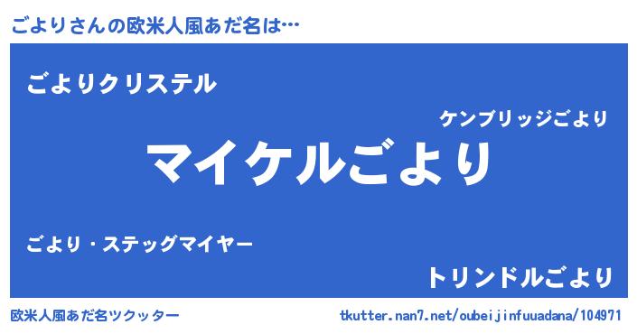 | ヒーロー風カッコイイあだ名 | 『スーパーゴヨリ』『ウルトラごよりマン』 |
