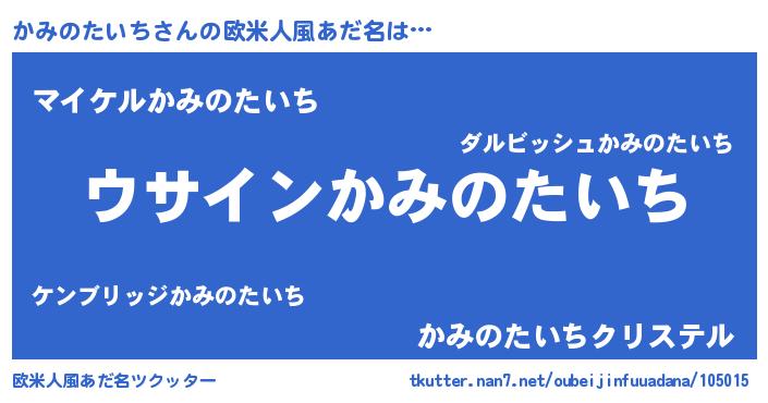 | 男性向けラノベタイトル風あだ名 | 『かみのたいちの嫁は女の子じゃないと思った?』 |