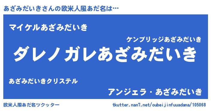 | ヒーロー風カッコイイあだ名 | 『仮面アザダー』『スーパーアザミダイキ』 |