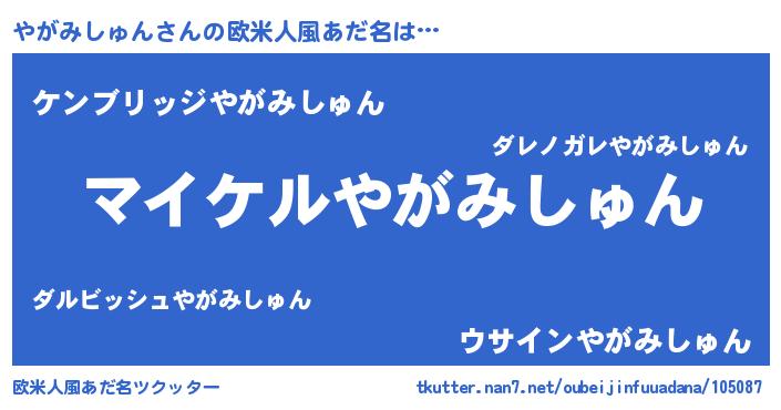 | 男性向けラノベタイトル風あだ名 | 『ヤガミシュンアートオンライン』 |