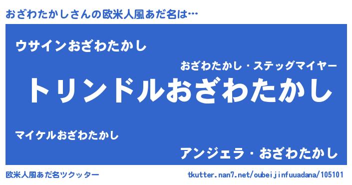 | 男性向けラノベタイトル風あだ名 | 『転生したらおざわたかしだった件』 |
