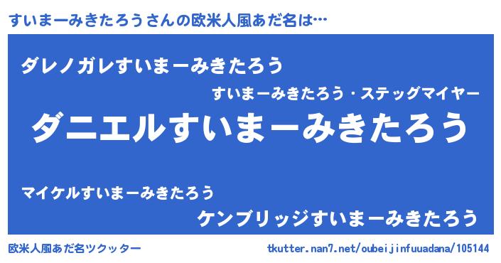 | 女子向けラノベタイトル風あだ名 | 『すいまーみきたろう恋絵巻』 |