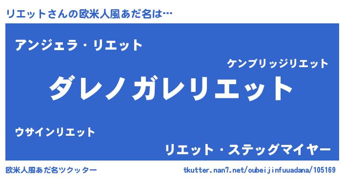 | 意味不明あだ名 | 『住所不定無職リエット(10歳)』 |