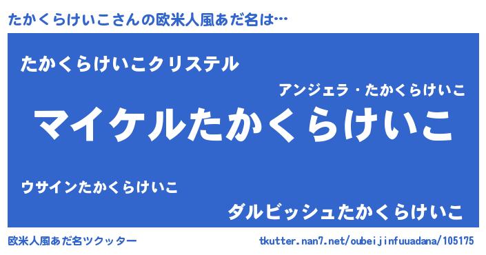| ヒーロー風カッコイイあだ名 | 『スーパータカクラケイコ』 |