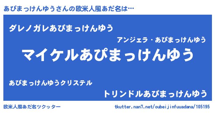 | 男性向けラノベタイトル風あだ名 | 『アピマッケンユウアートオンライン』 |