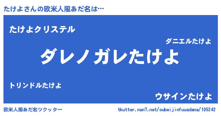 | 男性向けラノベタイトル風あだ名 | 『この素晴らしい世界にたけよを!』 |