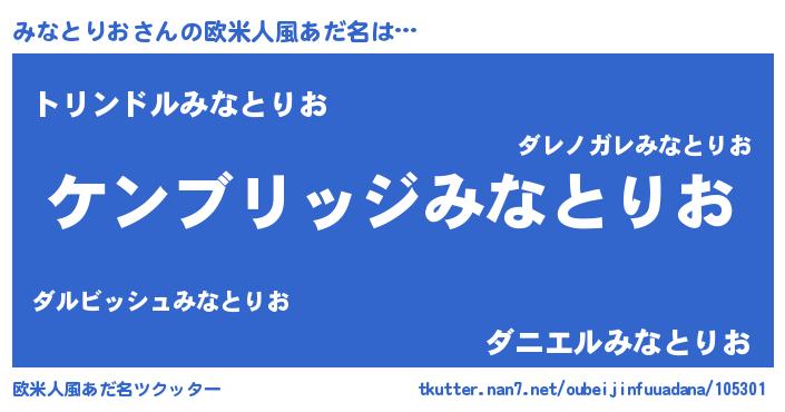 | 意味不明あだ名 | 『自称みなとりお』『永久保存みなとりお』 |