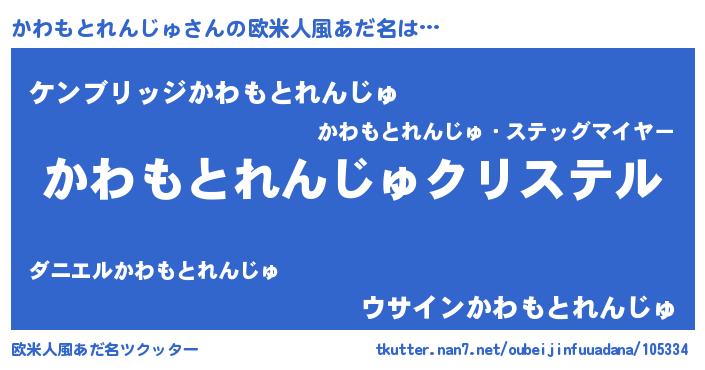 | 男性向けラノベタイトル風あだ名 | 『やはりかわもとれんじゅの青春ラブコメはまちがっている 』 |