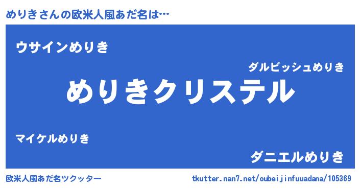 | 意味不明あだ名 | 『めりきフォーエバー』『永久保存めりき』 |