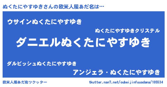 | 男性向けラノベタイトル風あだ名 | 『ノーゲーム・ノーヌクタニヤスユキ』 |