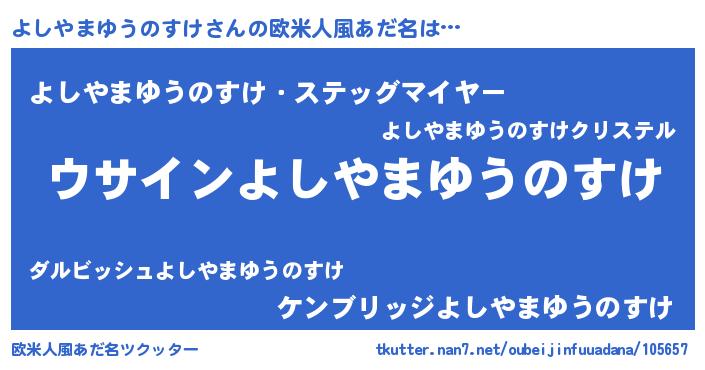 | 男性向けラノベタイトル風あだ名 | 『ダンジョンによしやまゆうのすけを求めるのは間違っているだろうか』 |