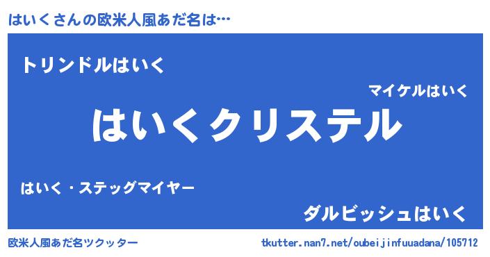 | 意味不明あだ名 | 『はいくフォーエバー』『永久保存はいく』 |