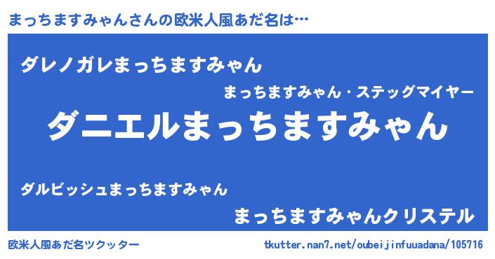 | 男性向けラノベタイトル風あだ名 | 『おまえをオタクにしてやるから、俺をまっちますみゃんにしてくれ! 』 |