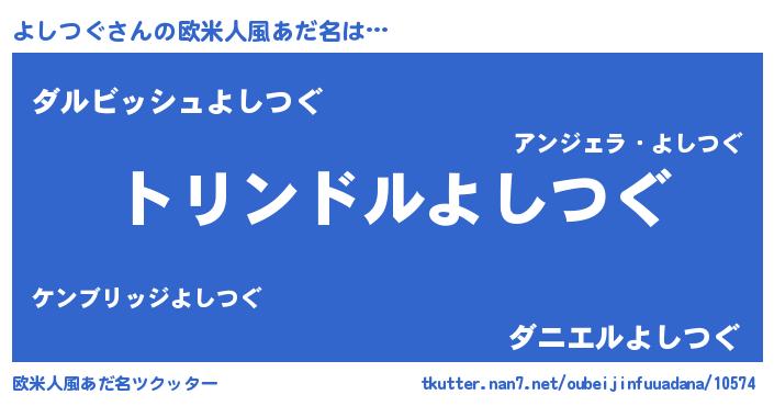 | 男性向けラノベタイトル風あだ名 | 『よしつぐ~年齢イコール彼女いない歴の魔法使い~』 |