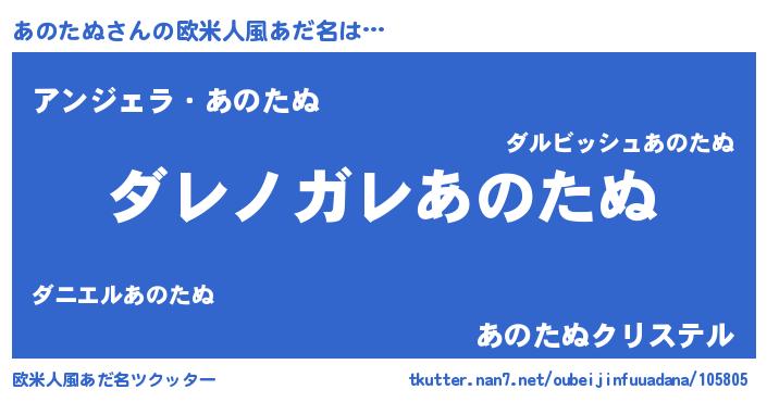 | ヒーロー風カッコイイあだ名 | 『仮面アノダー』『ウルトラあのたぬマン』 |