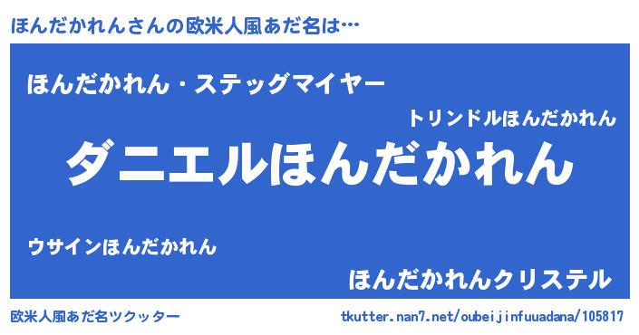 | 男性向けラノベタイトル風あだ名 | 『おまえをオタクにしてやるから、俺をほんだかれんにしてくれ! 』 |