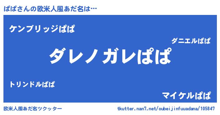| 意味不明あだ名 | 『住所不定無職ぱぱ(84歳)』『自称ぱぱ』 |