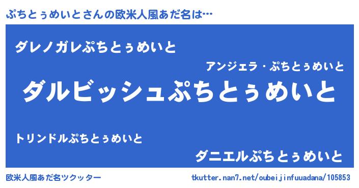 | 男性向けラノベタイトル風あだ名 | 『ぷちとぅめいとという概念が存在しない退屈な世界 』 |