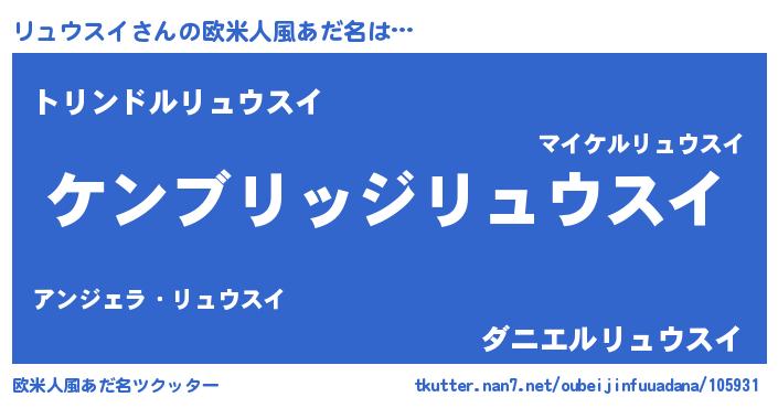 | 男性向けラノベタイトル風あだ名 | 『Re:リュウスイから始める異世界生活』 |