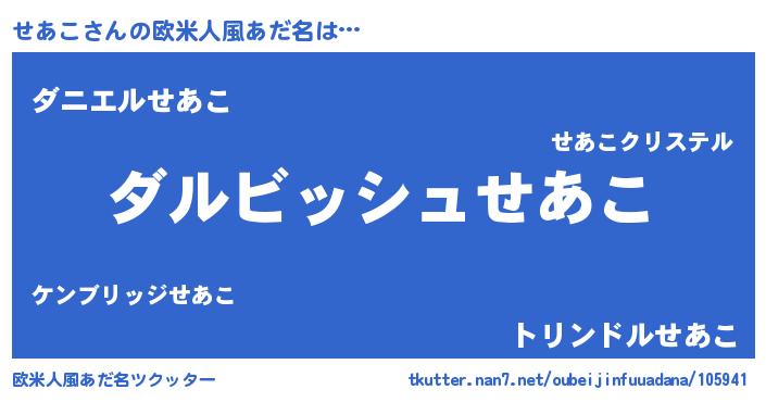| ヘコむあだ名 | 『せあこ(笑)』『なまこ酢』『せあお』 |