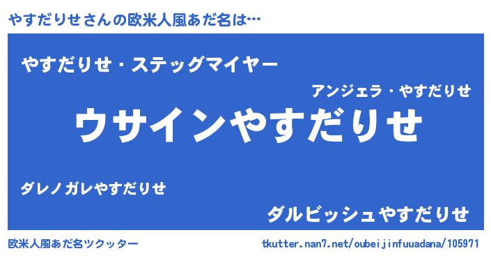 | 女子向けラノベタイトル風あだ名 | 『やすだりせの卵を拾いまして』 |